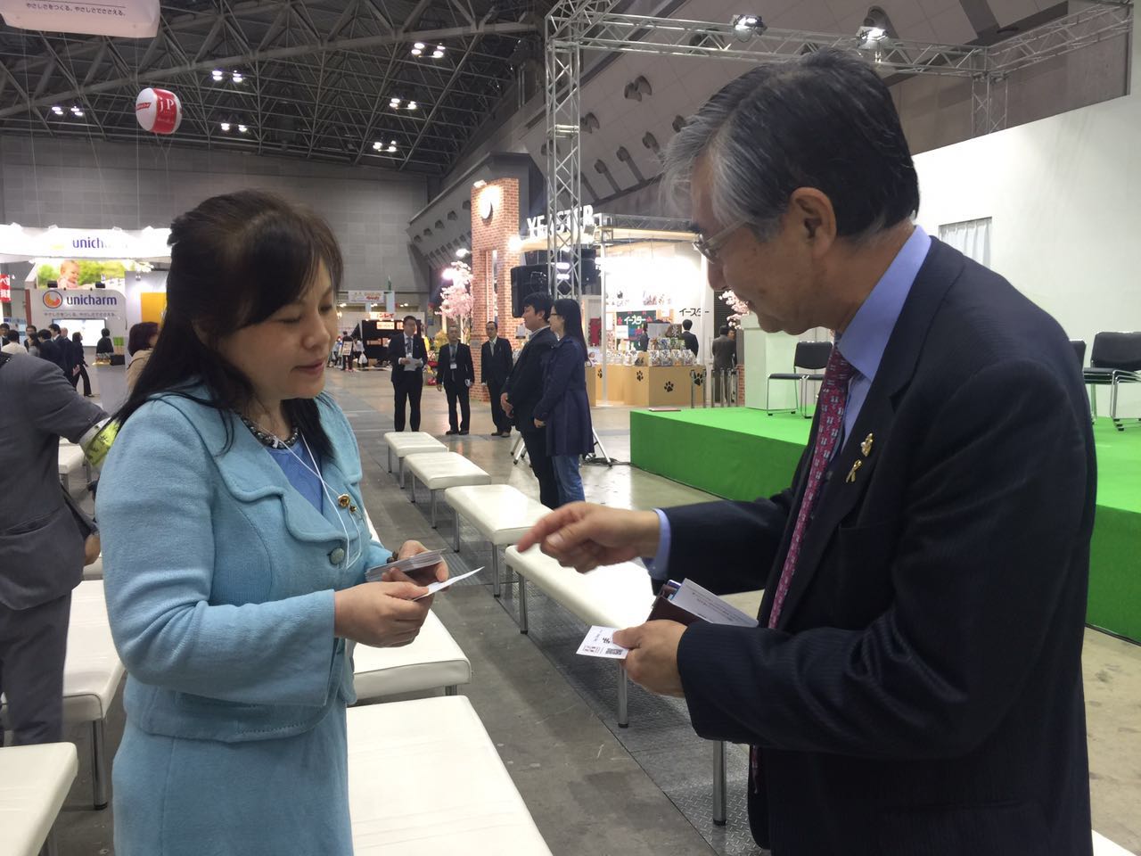 5月31日的開幕式上,CIPS主辦方長城展覽總經理程楊女士與Interpets的發起元老越村義雄先生、日本寵物食品協會會長石山先生友好溝通,互換行業意見。